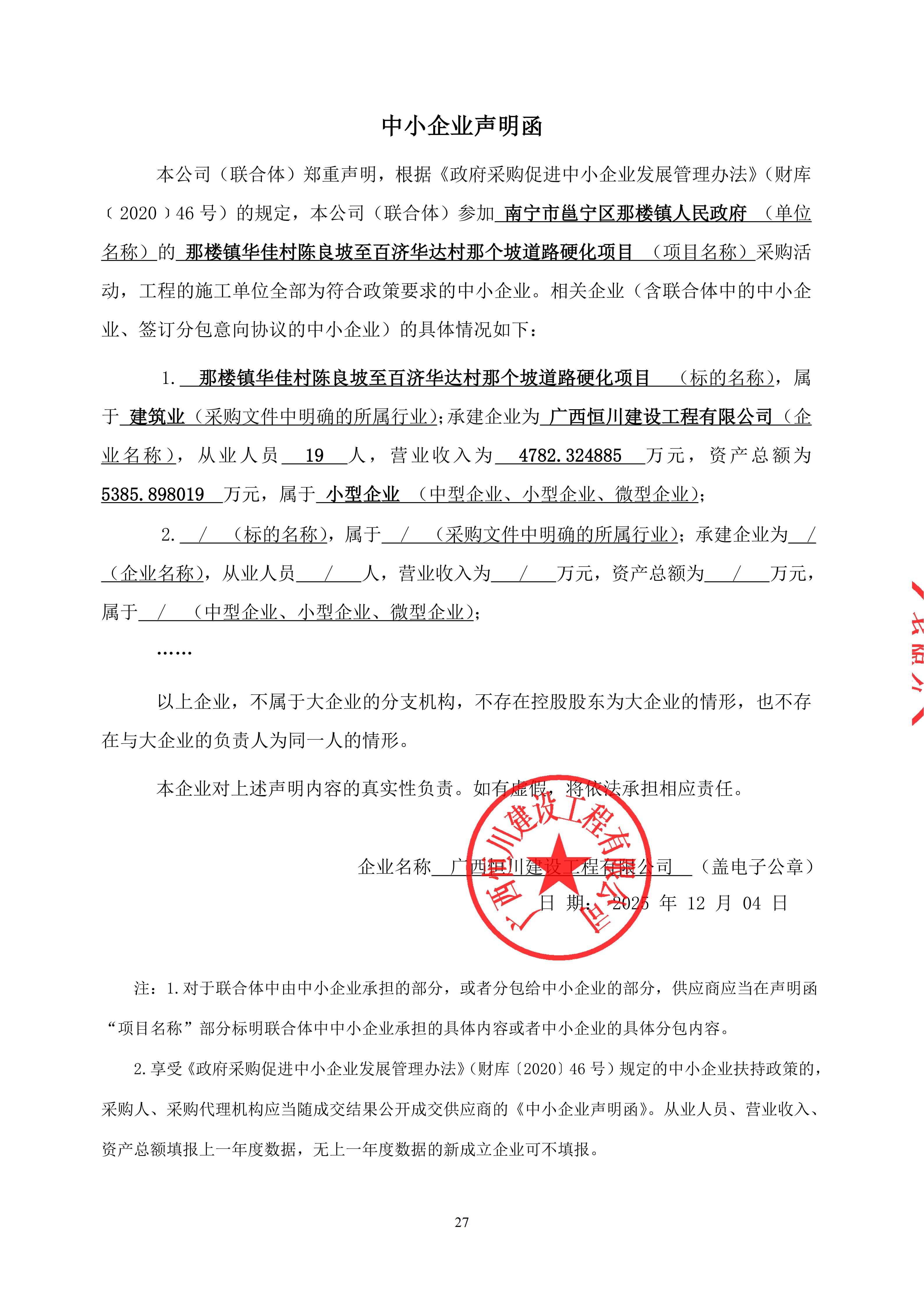 1那楼镇华佳村陈良坡至百济华达村那个坡道路硬化项目那楼镇华佳村陈良坡至百济华达村那个坡道路硬化项目具体以设计施工图及工程量清单包含的内容为准。60日历天蓝雪光二级建造师证:桂******4439,安全生产考核合格证B证:桂交安B(19)G00318